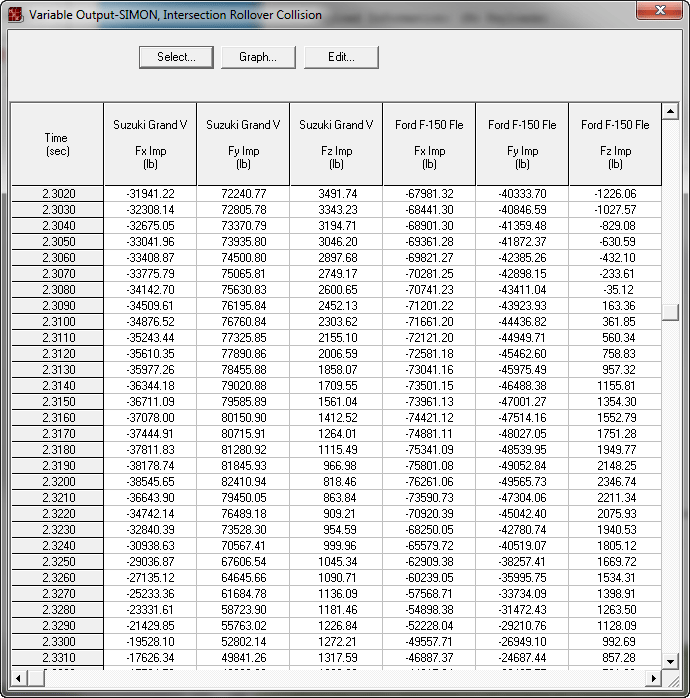 Vehicle Impact Forces vs. Time for Intersection Collision Event