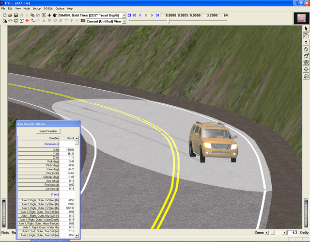 Skidding of the SUV due to Hydroplaning shown in HVE Event Editor
