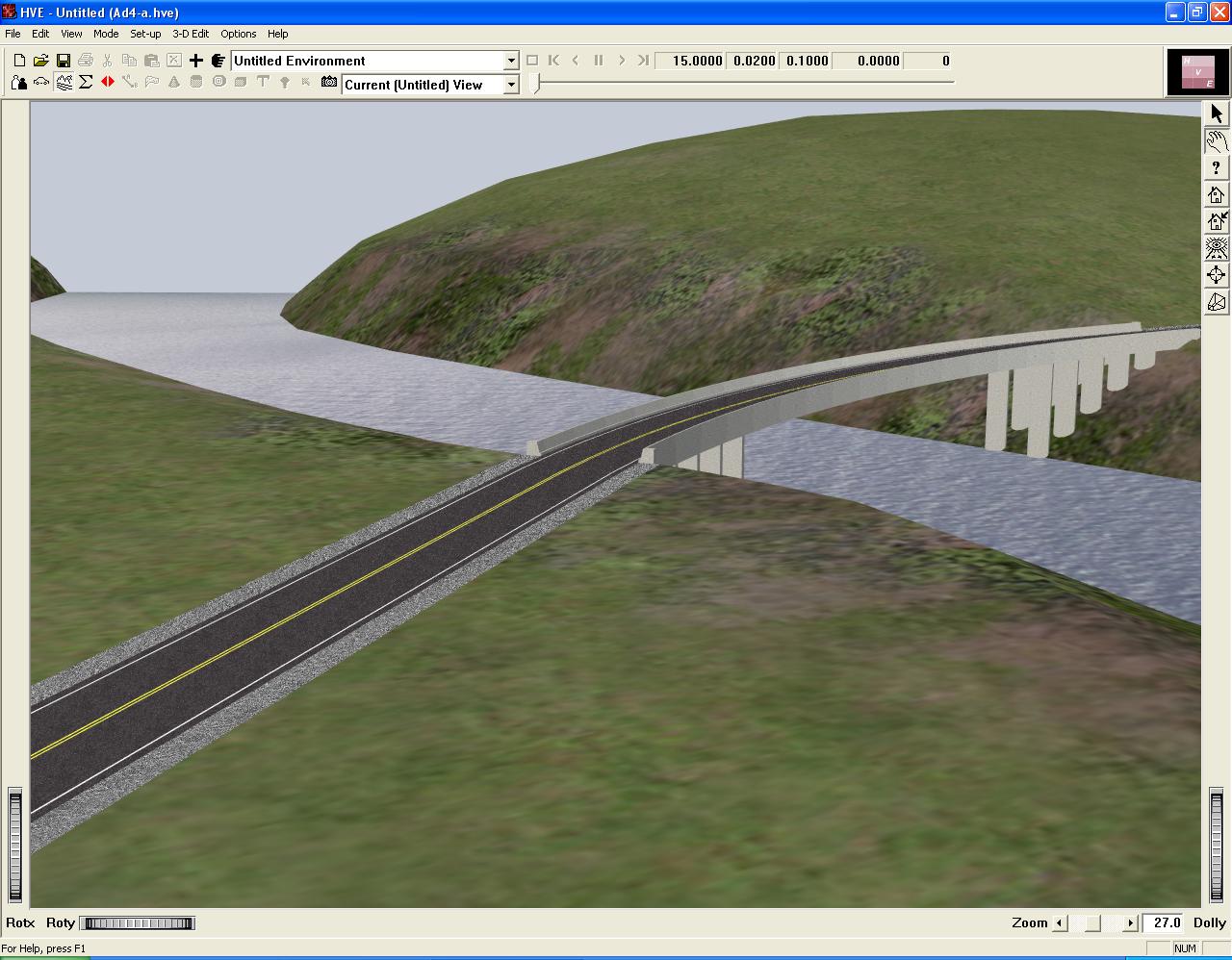 Terrain Model of Roadway and Bridge shown in HVE Environment Editor