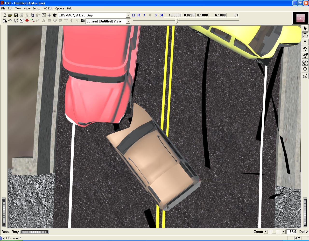 Freightliner Impact with Land Rover at t = 6.1 seconds in sequence - HVE-2D Event Editor