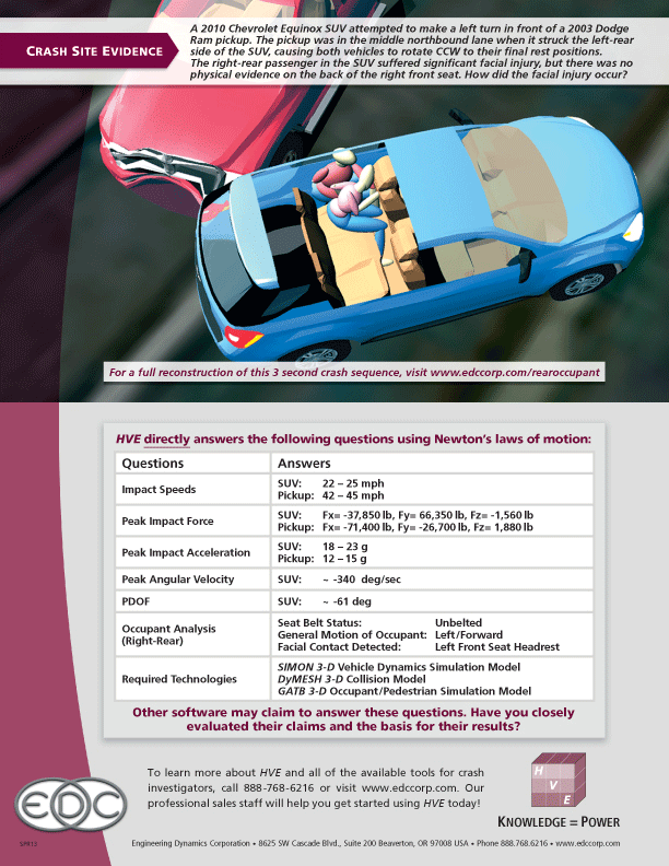 This crash sequence is fictional and is intended to illustrate applications for HVE software.