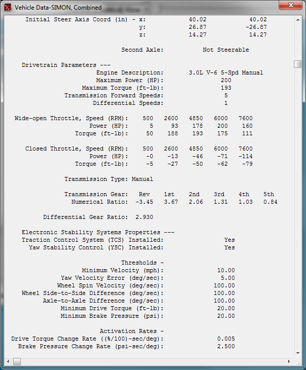 Vehicle Data Report (Displayed Section is for Drivetrain and ESS Properties)