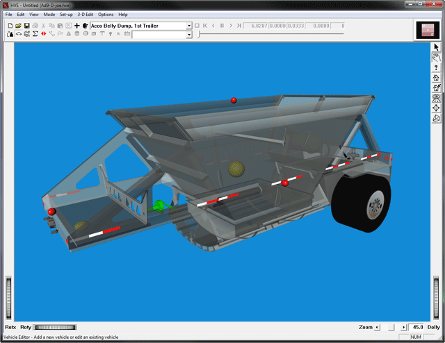Belly Dump Trailer shown in HVE Vehicle Editor