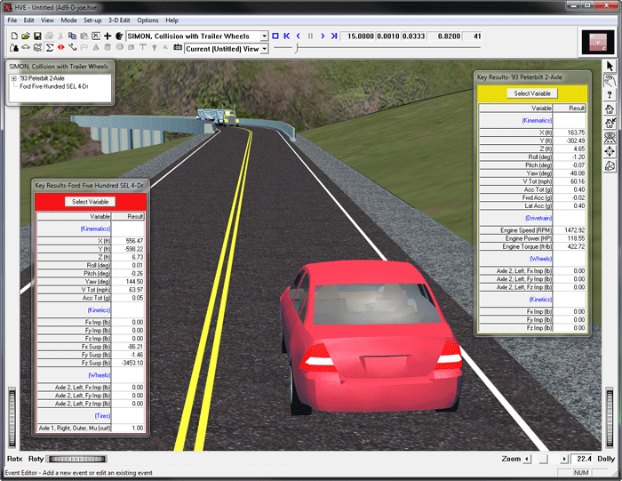 Peterbilt initially crossing the center line in front of Ford shown in HVE Event Editor