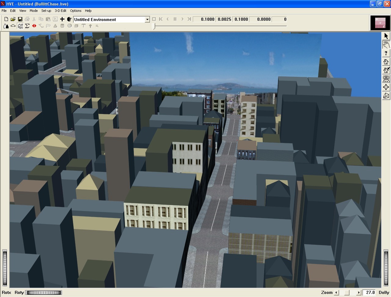 Russian Hill (view down Taylor Street) model shown in HVE Environment Editor
