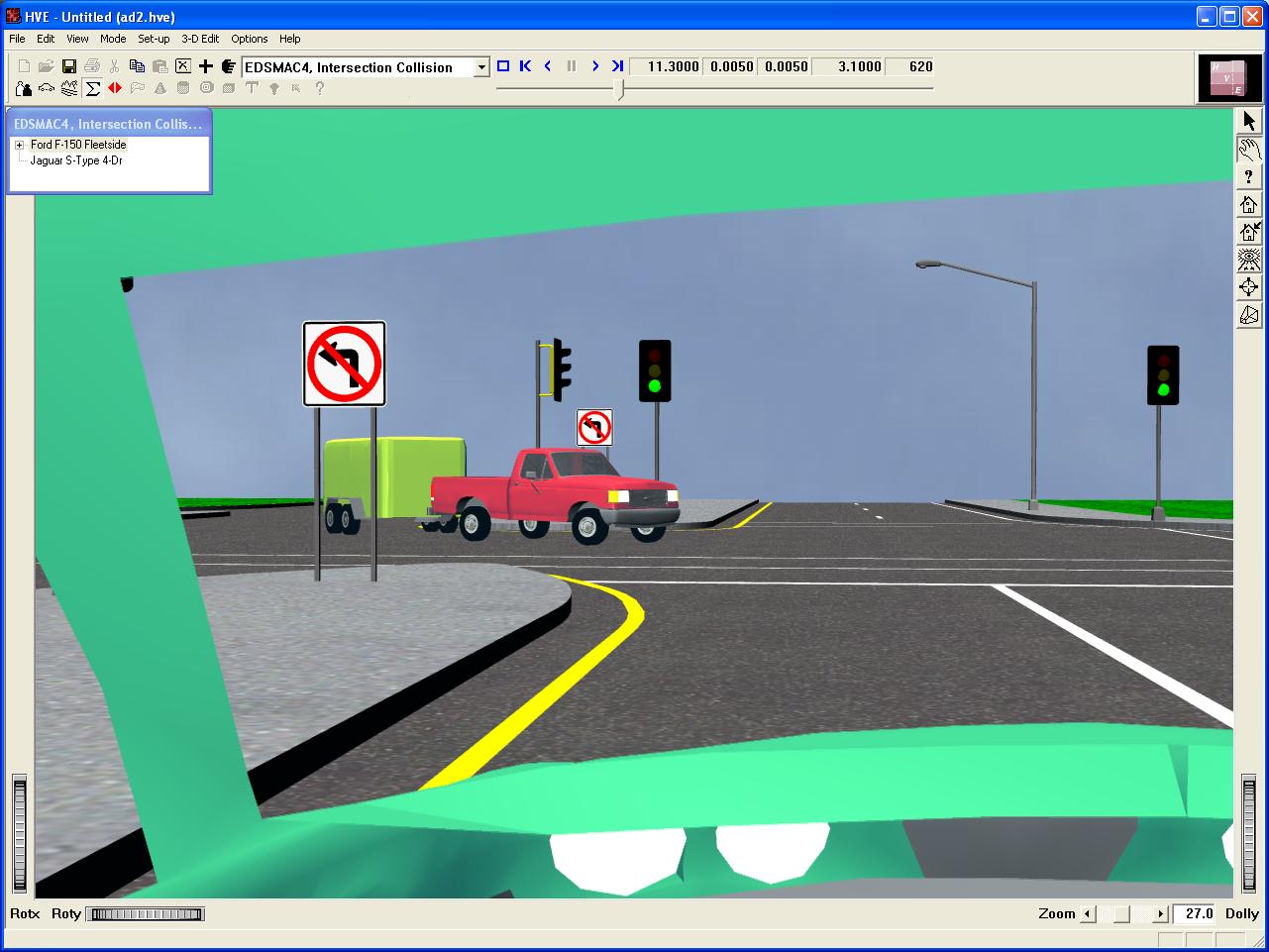 View from Sedan Driver's location as vehicle approaches the intersection - HVE Event Editor