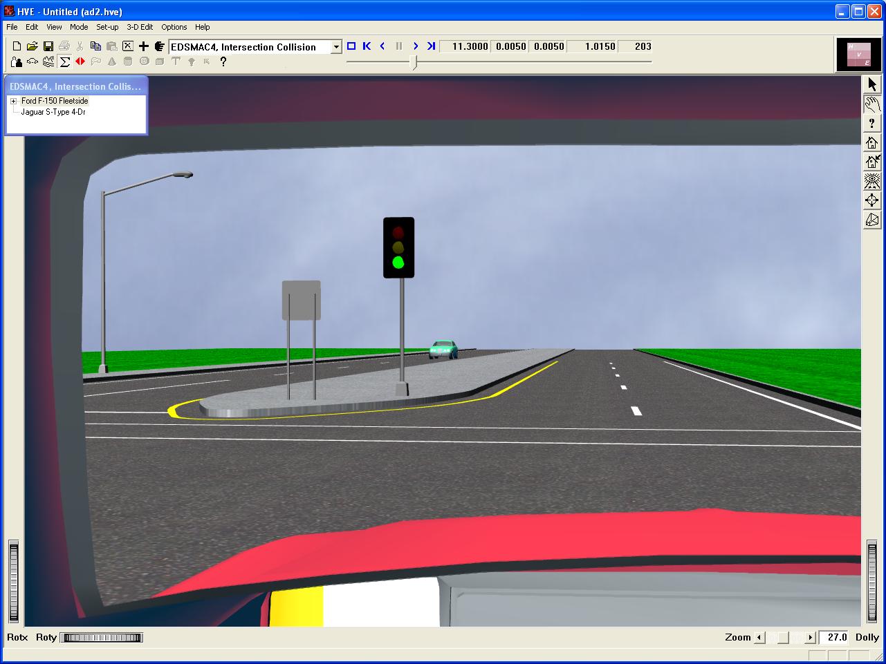 View from Pickup Driver's location as vehicle begins left turn at intersection - HVE Event Editor